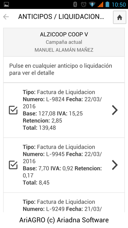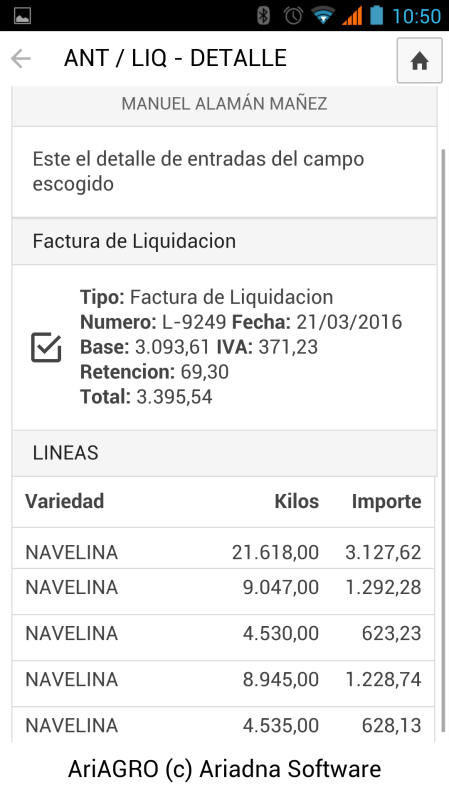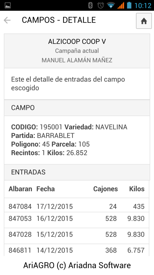 En esta versión se puede consultar la información de los campos adscritos a la cooperativa con el detalle de la recolección de cada variedad en las diferentes campañas. Igualmente se pueden consultar los anticipos y liquidaciones que se han emitido desde la cooperativa, ahorrando mucho tiempo en la atención de llamadas con estas consultas.