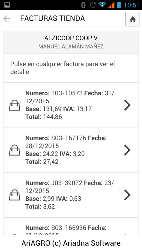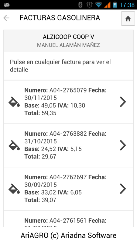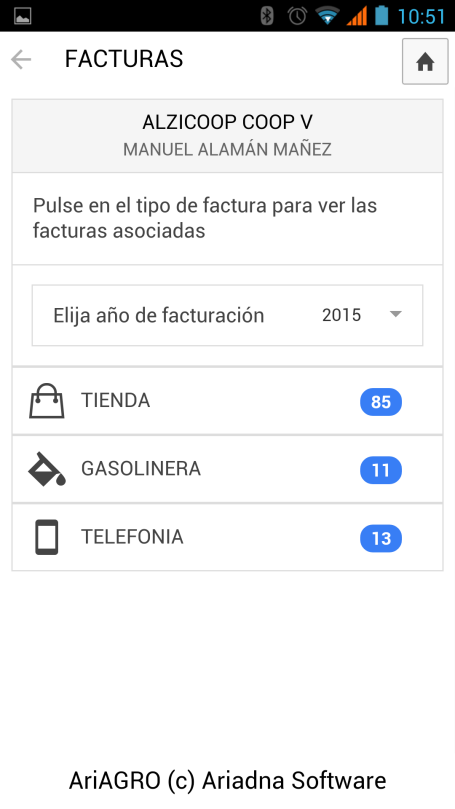 La facturación de la tienda, telefonía y gasolinera está ahora a una pulsación desde el propio teléfono. El socio podrá elegir de que año quiere ver las facturas del sistema.