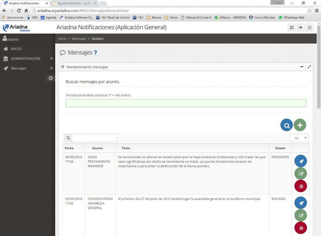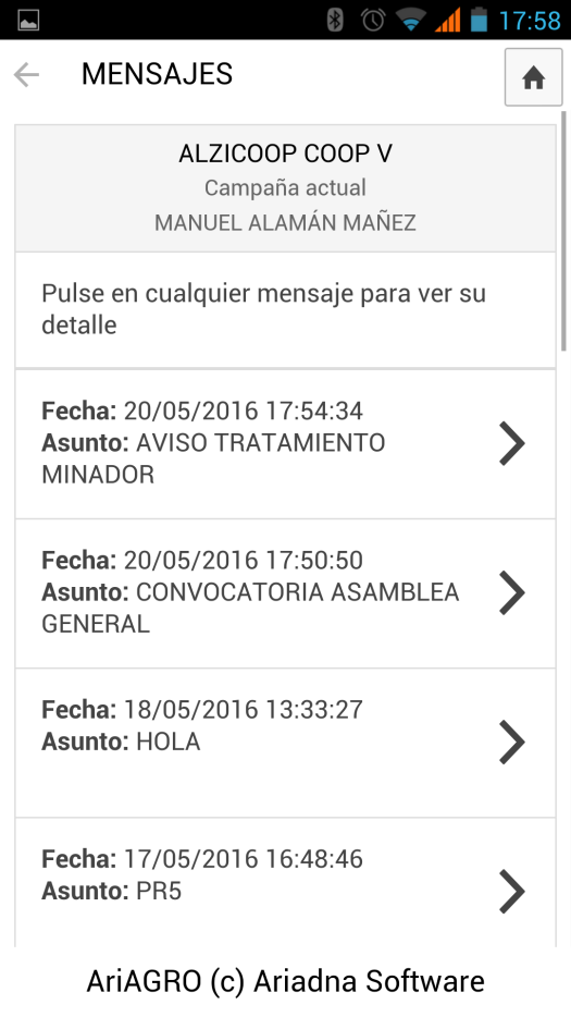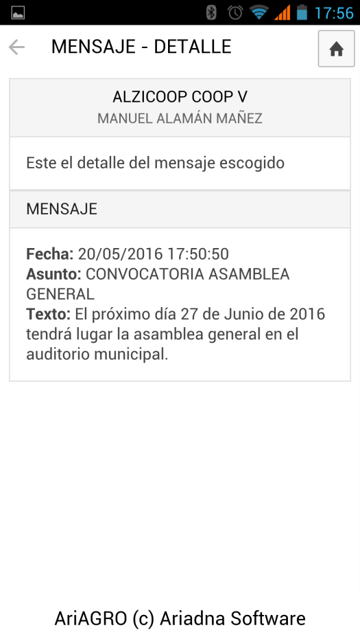 AriAGRO APP dispone de un sistema de notificación similar al usado en aplicaciones tipo WhatsApp y totalmente personalizado para la cooperativa.